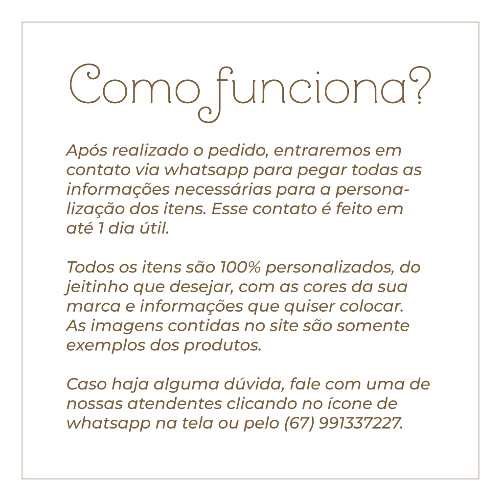 Após a compra, entraremos em contato para pegar as informações necessárias para a criação da arte.